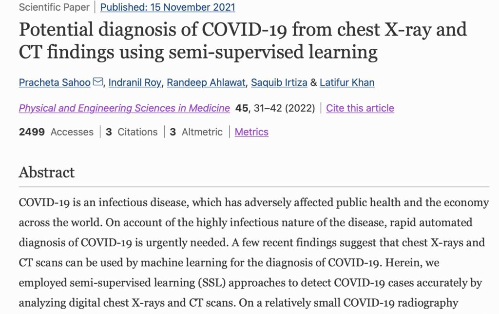 Dr. Pracheta, Dr. Indranil, and the team developed a new semi-supervised learning algorithm, COVIDcon, for the potential diagnosis of COVID